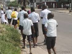 Test de fin d'études primaires : le frais de participation fixé à 10 USD à Mbandaka Des élèves candidats au Test national de fin d'études primaires (Tenafep), édition 2014 sur une avenue de Kinshasa le 05/06/2014. Radio Okapi/Ph.